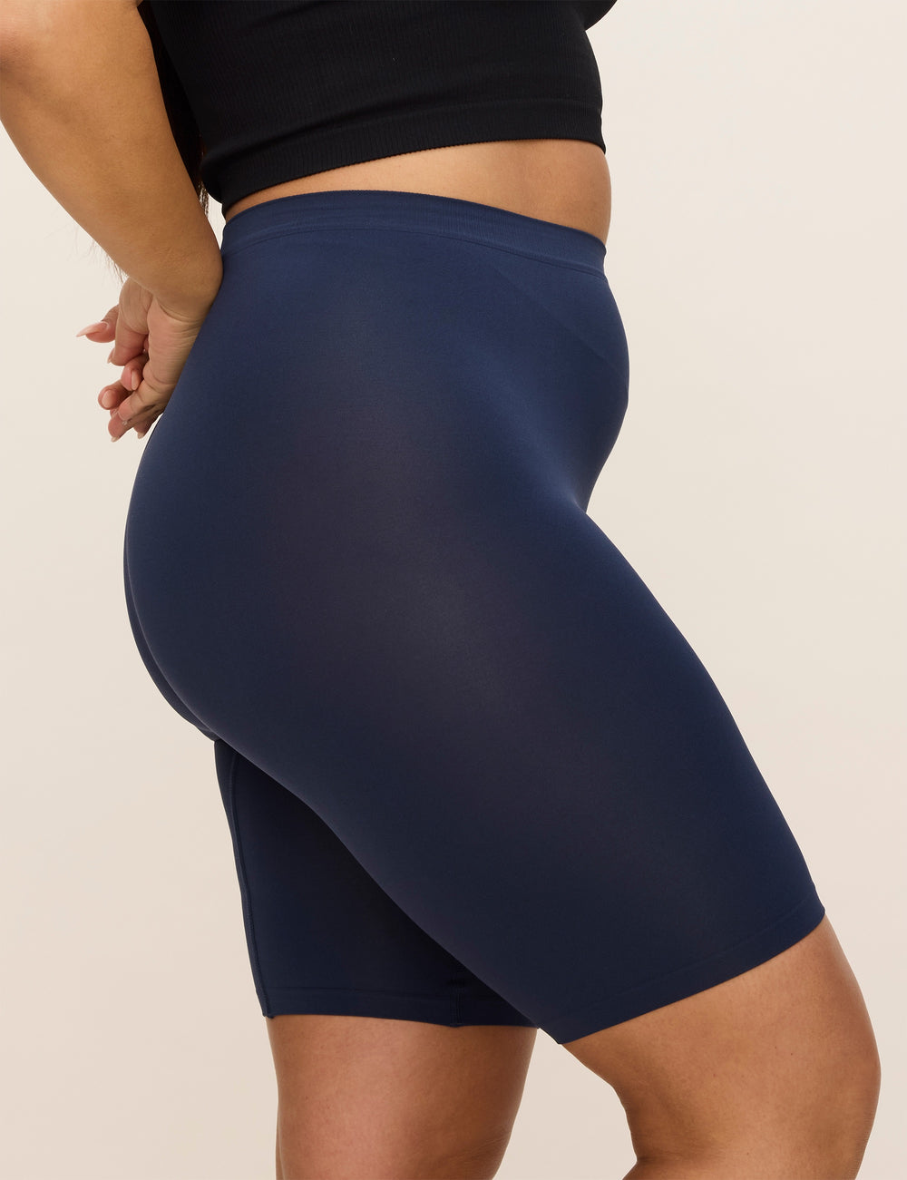 Thigh Society shorties are totally bump-friendly — they don’t compress you or suck you in like shapewear. Instead, they’re a lightly smoothing, breathable, sweat-wicking essential you’ll reach for again and again.