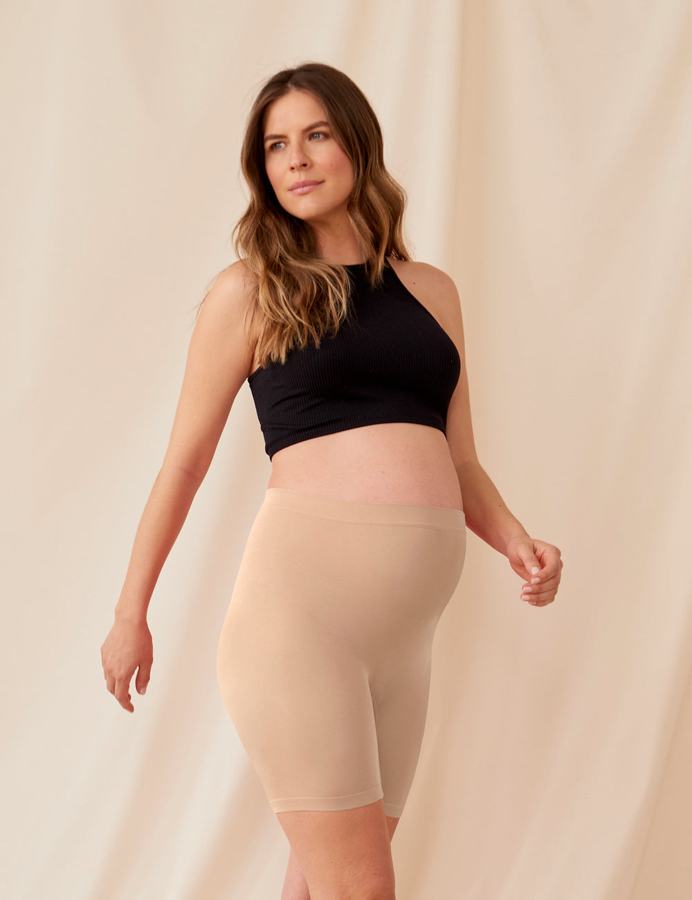Thigh Society shorties are totally bump-friendly — they don’t compress you or suck you in like shapewear. Instead, they’re a lightly smoothing, breathable, sweat-wicking essential you’ll reach for again and again.